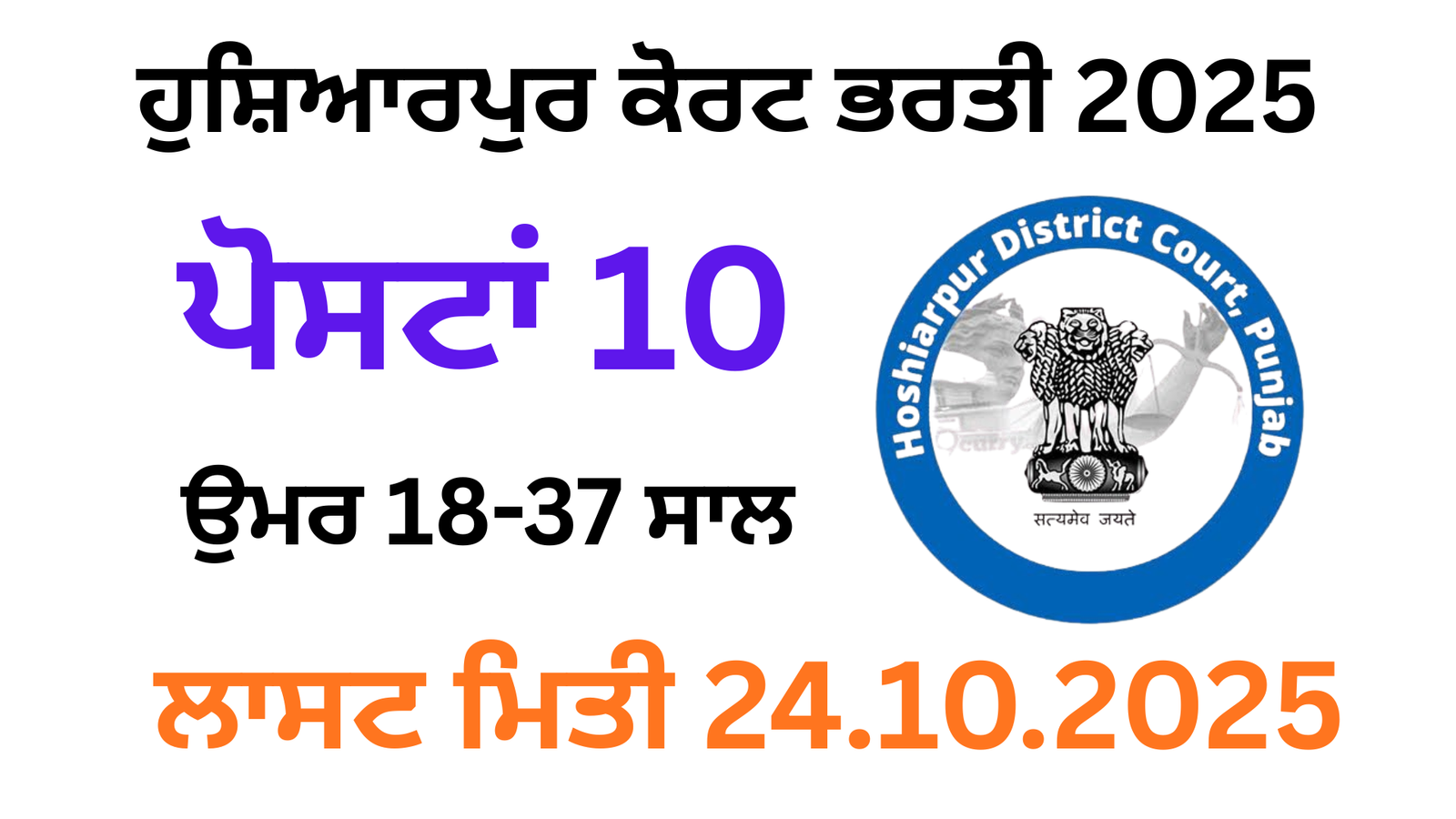 District & Sessions Judge Hoshiarpur Recruitment 2025 Applications for filling up following posts of Stenographer...
