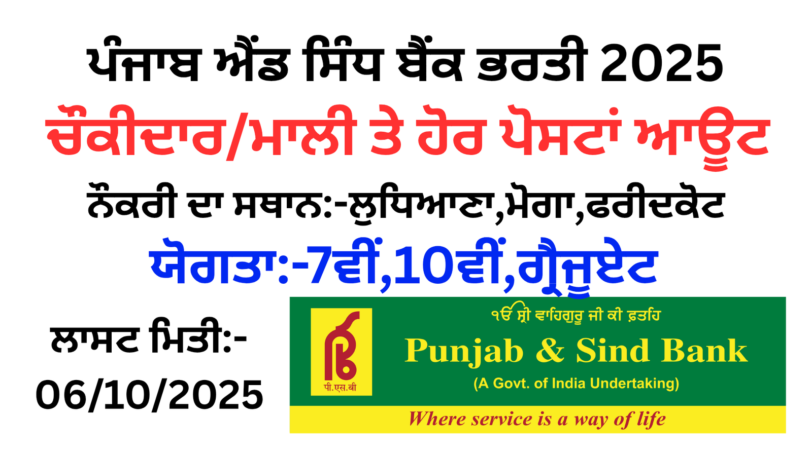 Punjab & Sind Bank Vacancy 2025 Application for engagement of support Staffs at Punjab and...