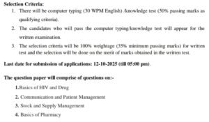 Selection Criteria:1. There will be computer typing (30 WPM English) /knowledge test (50% passing marks as qualifying criteria).