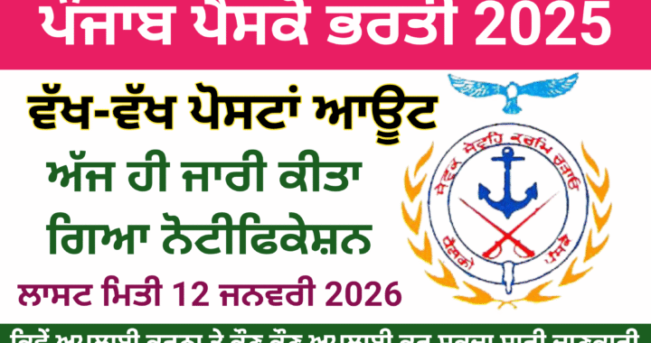 Punjab Pesco Recruitment 2025 Applications are invited for the following posts on Regular/Contractual basis in the Department of Punjab Ex-Servicemen Corporation, SCO 89-90, Sector 34-A, Chandigarh. Punjab Pesco Recruitment 2025 Overview Department Name Punjab Ex-Servicemen Corporation SCO 89-90, Sector 34-A, Chandigarh Ph: 0172-2620423 Recruitment Notice Reference No. 502(ii)/AD/PESCO-14A Post Name FC,Assistant,Clerk & Others Posts Out … Continue reading Punjab Pesco Recruitment 2025 Notification Out/ਪੰਜਾਬ ਪੈਸਕੋ ਭਰਤੀ 2025