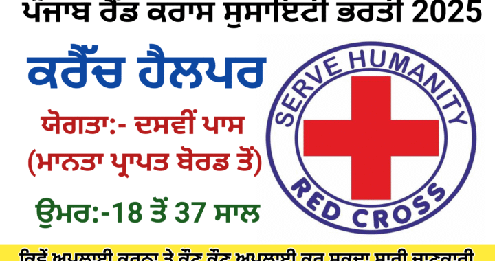 Punjab Red Cross Society Recruitment 2025/ਪੰਜਾਬ ਰੈੱਡ ਕਰਾਸ ਸੁਸਾਇਟੀ ਭਰਤੀ 2025,